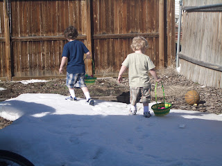 We spent Easter at my parents in Heber-an Easter egg hunt in the snow!! I believe that is a first! The boys had a ball anyways. I'm kicking myself for not having a picture of them in their so cute suits! Chances are I won't get them in them again anytime soon - they are at the dry cleaners trying to get out all the chocolate!! Plus Will's shirt barely fit, it was all I could do to get the top button up to put his tie on his chubby little neck!